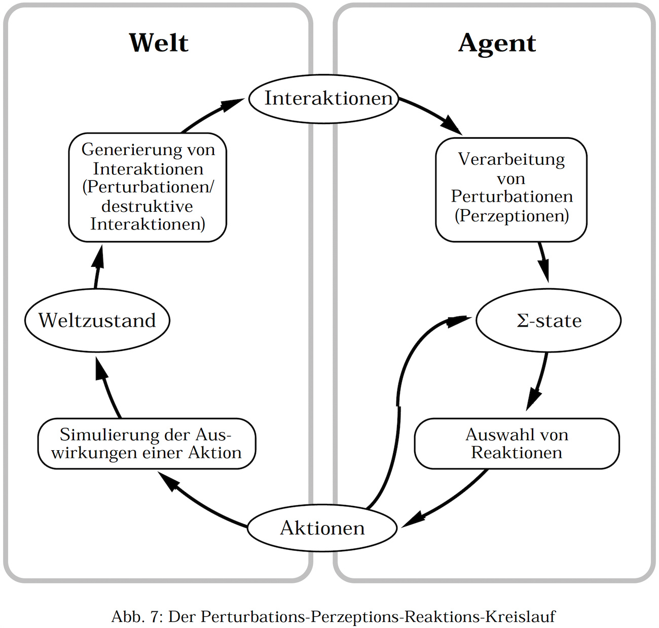 - Es gibt keine objektiv strukturierte Welt, die von den Agenten zu erkennen wäre. Entsprechend der konstruktivistischen Sichtweise wird die Umgebung als Auslöser von Interaktionen (Perturbationen und destruktiven Interaktionen) der Agenten modelliert, wobei die Struktur eines Agenten bestimmt, was Perturbationen bzw. destruktive Interaktionen für diesen Agenten sind, und wie sie von ihm verarbeitet werden.