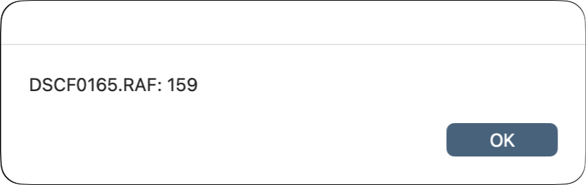 Bildzähler ist ein AppleScript-Droplet, mit dem Sie sich die Bildnummer von Bilddateien (einschließlich RAF-Dateien) neuerer Fuji-Kameras anzeigen lassen können. Man zieht eine oder mehrere Dateien auf das Droplet, und es verrät zu jeder der Dateien den Bildzählerstand, den die Kamera in den Metadaten der Datei gespeichert hat.