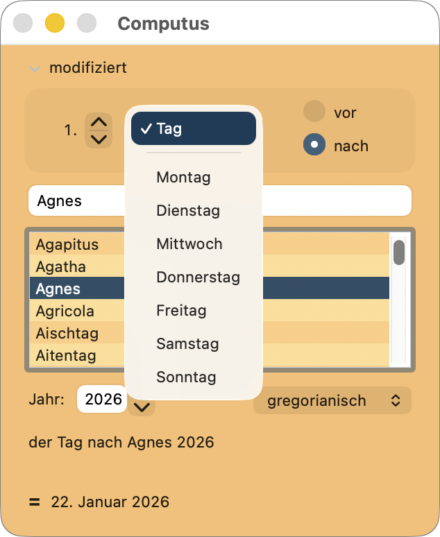 „Computus“ nannte man im mittelalterlichen Latein die Kalenderberechnung, insbesondere die Bestimmung des Ostertermins. Mit diesem Programm können Sie Datierungen nach kirchlichen Feiertagen, wie sie in Dokumenten des Mittelalters und der frühen Neuzeit häufig verwendet wurden, in die uns geläufige Form umrechnen. Mehr als 700 feste und bewegliche Feste sind in Computus gespeichert und können wahlweise nach dem julianischen oder gregorianischen Kalender berechnet werden. Eine Gebrauchsanleitung mit einem Überblick zur Geschichte der Kalenderwissenschaft liegt dem Programm bei.